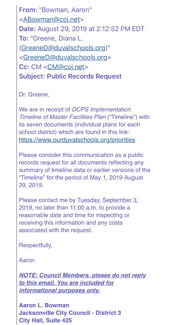 Next because you know there is nothing else going on in the city, not like there is a hurricane in the vicinity and the super doesn't have to get the hurricane shelters ready, something nobody who works for a charter school has to do, Bowman "demanded" everything the district has on the timeline and it better be in by Tuesday too.
